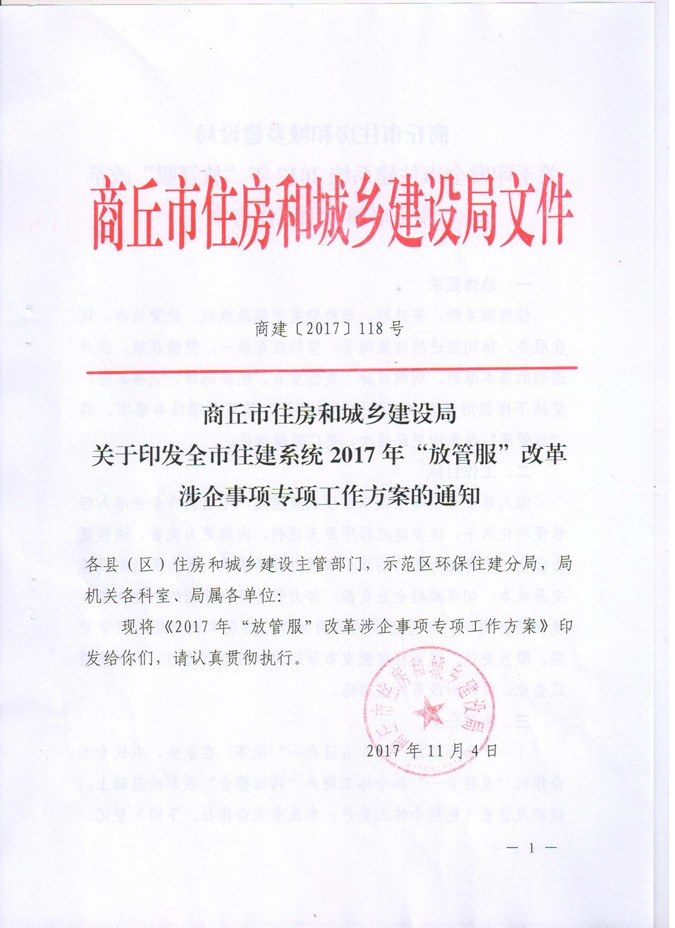 市住建局关于印发全市住建系统2017年“放管服”改革涉企事项专项工作方案的通知