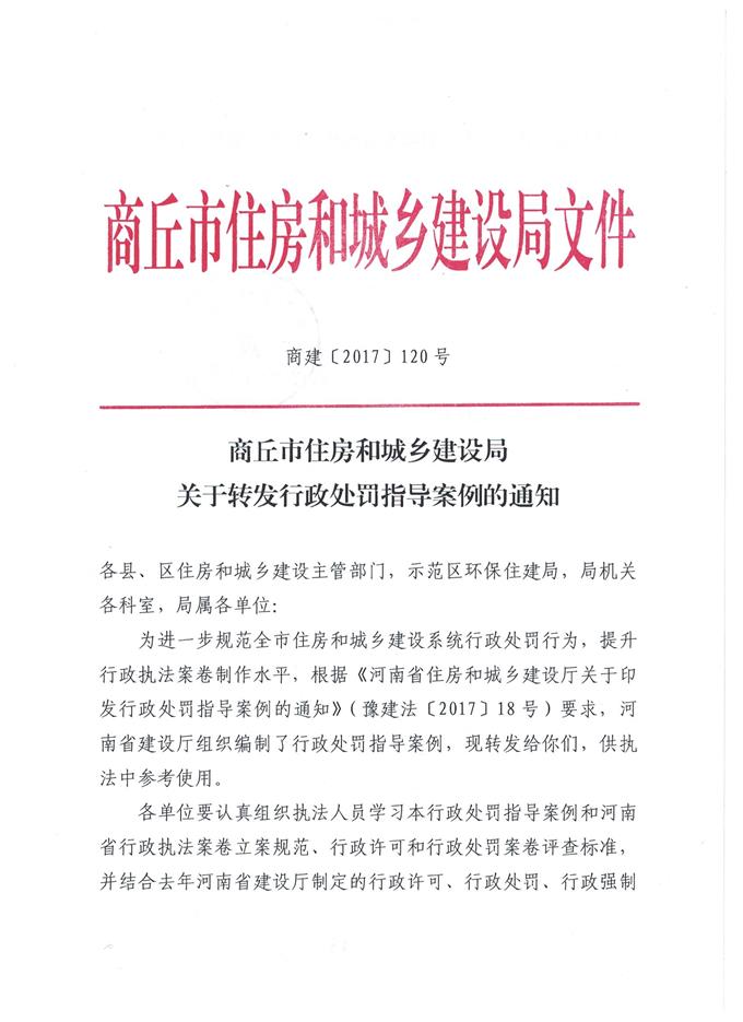 市住房和城乡建设局关于转发行政处罚指导案例的通知